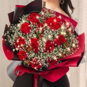 19朵红玫瑰,满天星丰