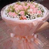 19支粉玫瑰,黄莺间插
