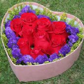 9支红玫瑰用紫色勿忘我