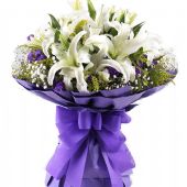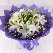 6支白色多头百合,满天
