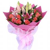 6支粉色康乃馨+6支黄
