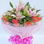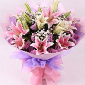 6支多头粉香水百合,搭