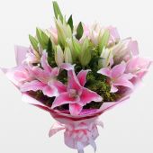 8支粉色多头百合,搭配
