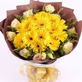 19支香槟玫瑰搭配黄英