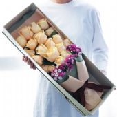 香槟玫瑰19朵,搭配尤