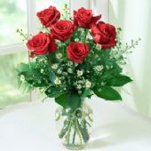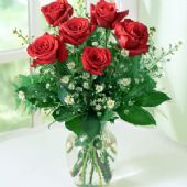 9枝红玫瑰,满天星、黄