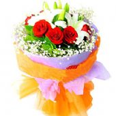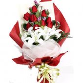 红玫瑰9枝,百合2枝,