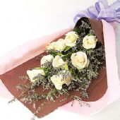 白玫瑰9枝,搭配情人草