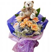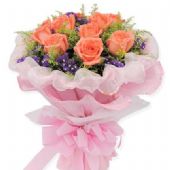 香槟玫瑰11支,满天星