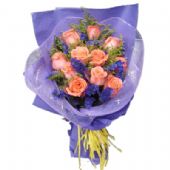 12朵粉玫瑰,紫色勿忘