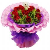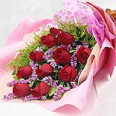 红玫瑰11枝,满天星,