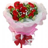 11枝红玫瑰+满天星和