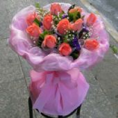11枝粉色玫瑰,外围黄