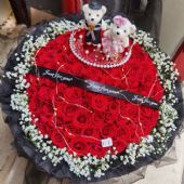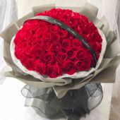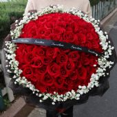 99朵红玫瑰,花束上放